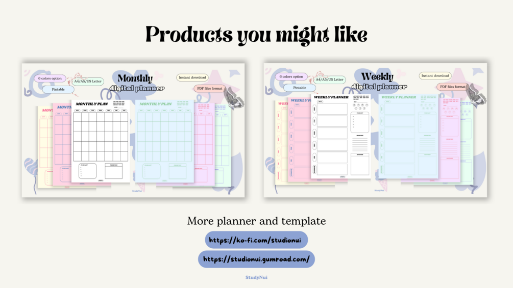 Weekly Digital Planner: https://studionui.gumroad.com/l/WeeklyDigitalPlanner